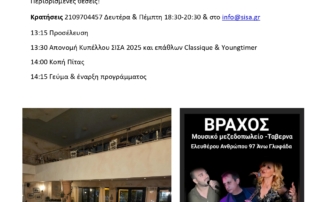 Ο ΣΙΣΑ σας προσκαλεί την Κυριακή 1 Μαρτίου στην Ταβέρνα «Βράχος» στην Άνω Γλυφάδα, Ελευθέρου Ανθρώπου 97. Θα τιμήσουμε τους πρωταθλητές &